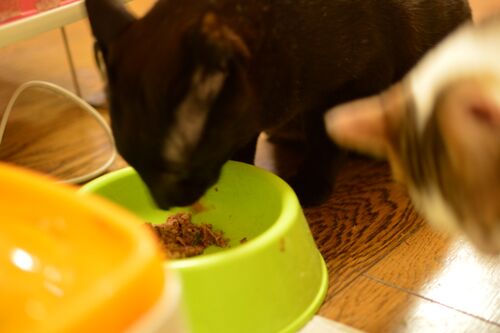 我が家は、ほぼカリカリなのでパウチのごはんは滅多にあげません。試供品とかもらいものとかそれくらい。 なので、時々出すと猫たちの食いつきが半端ないです。 夢中で食べるくろかわ。うしろから近づくむー。 お、うまそうにゃ。くれにゃ。 美味しい餌を食…
